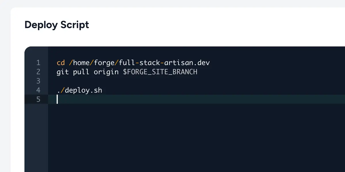 I love Laravel Forge’s quick deploy scripts. Forge allows you to set up a deploy script in their web interface and run it when you push to a git branch. However, I generally prefer to keep orchestration in the git repository. It’s nice to have history, and I don’t want to visit Forge whenever I want to make a change to the deploy script.